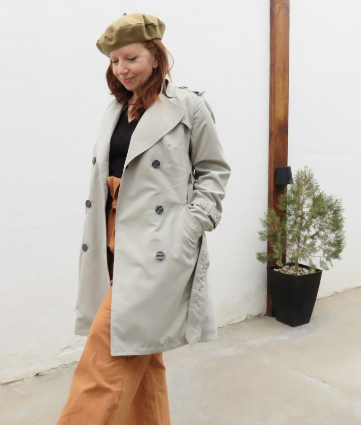 Pero en este trench decidí hacer un toile hecho y derecho y construí la prenda completa, con dobladillos, pespuntes, etc.