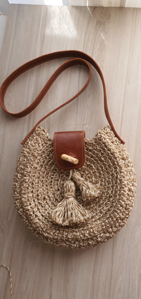 Para hacer la cartera con la que soñaba, le pedí ayuda a mi mamá que me tejió todas las partes en crochet, con hilo de yute.