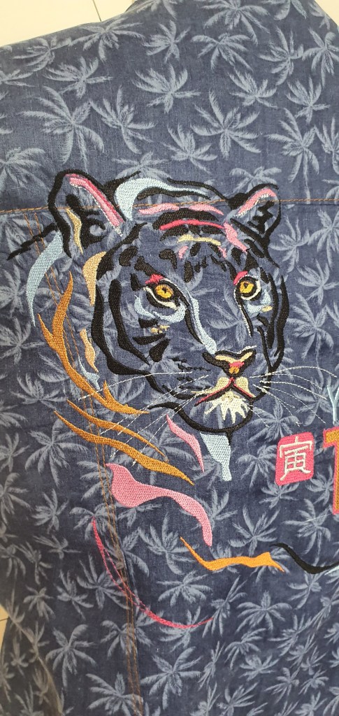 Febrero me lo consumió mucho trabajo en el museo (para las que son nuevas por aquí, durante el día trabajo en un museo y este último año tuve una agenda muuuuy apretada) y un proyecto grande: hice una chaqueta de Denim estampado estilo oversize. A la que bordé con un tigre en la espalda.