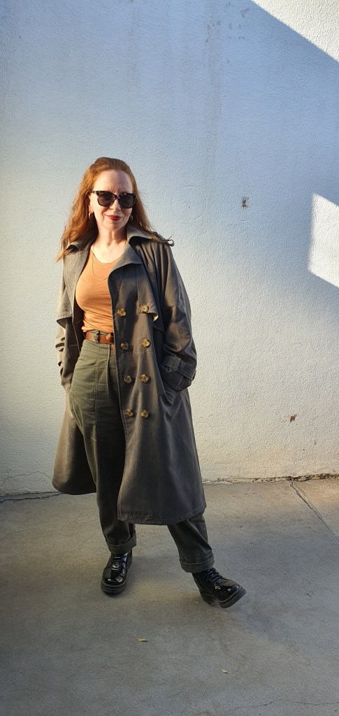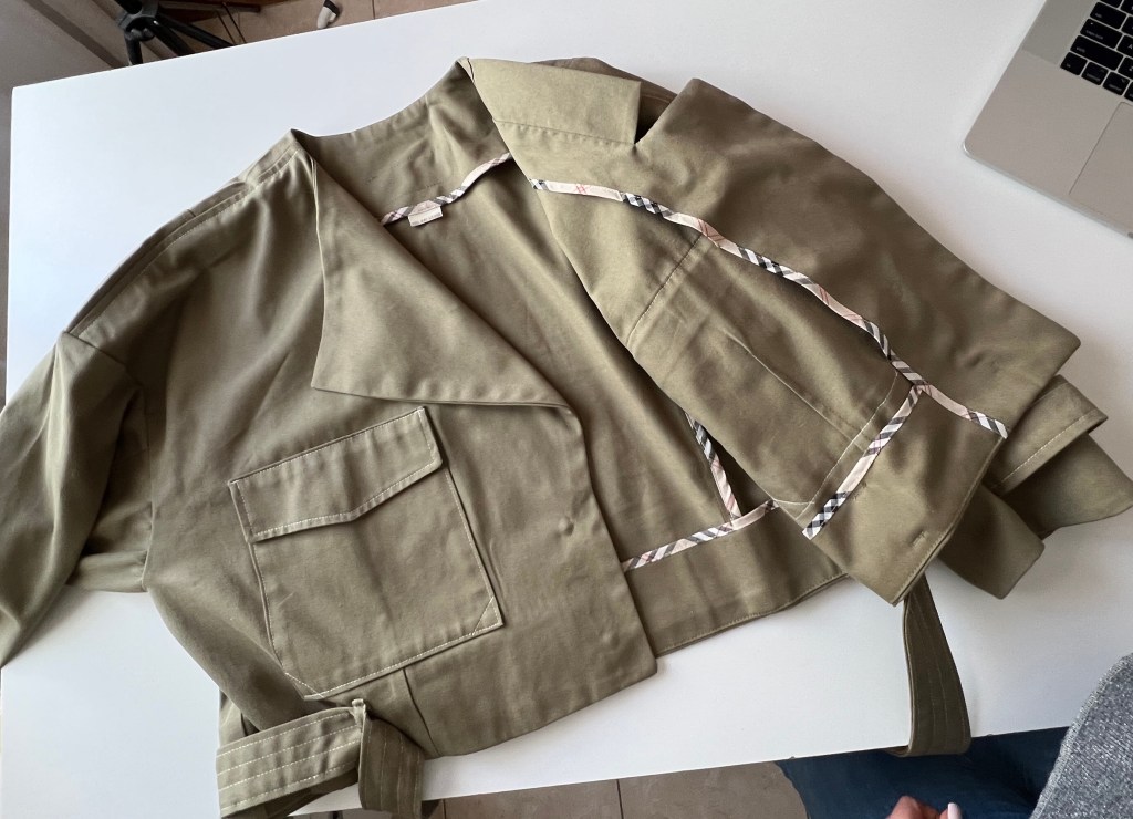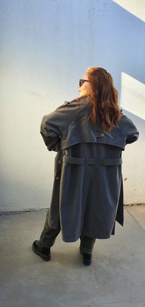 En marzo también me dediqué a una prenda que me llevó todo el mes, pero valió la pena: un trench verde oliva con mangas ranglan.