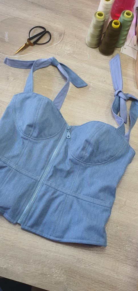 También con recortes hice este top con aires de corset, en Denim camisero.