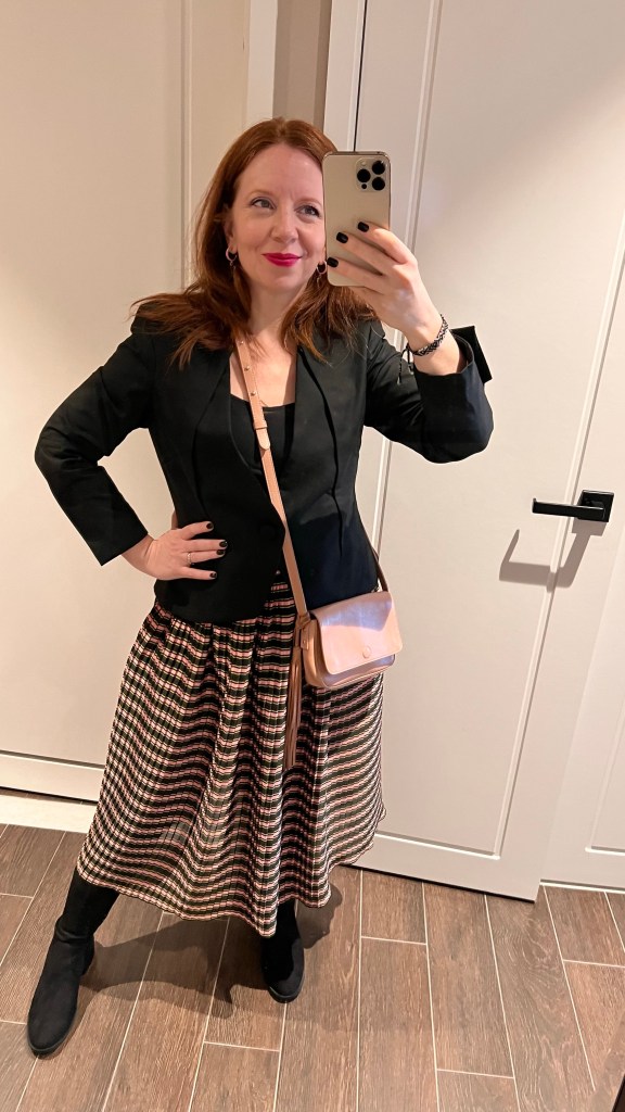 Y como no podía ser poco, a último momento cosí una falda con seda plisada para acompañarlo.