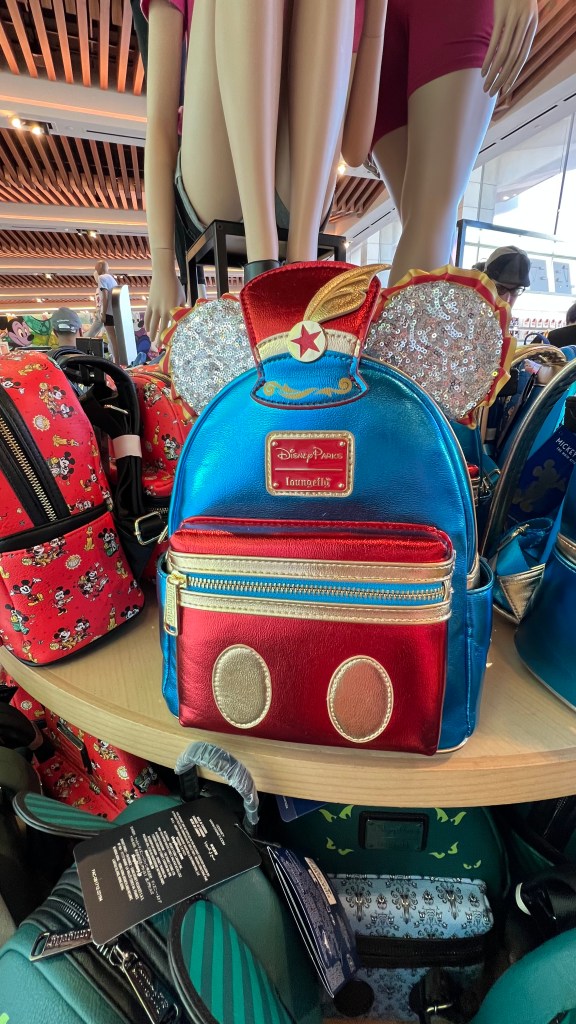 O las mochilas de todos los atuendos conocidos de Mickey, como esta hecha en base al traje de presentador de circo.