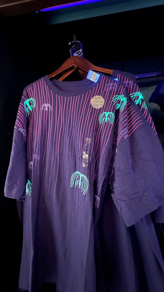 Traté de hacer una selección de lo que me llamó la atención ya que cuando uno se imagina indumentaria con temas de películas, indefectiblemente cae en la fácil de «buzo liso con estampa del personaje». Pero en WDW nada es simple. Todo tiene un trabajo de diseño elaborado y pese a que uno encuentra el buzo liso con estampa, la mayor parte de la oferta es una interpretación muy elevada de la estética. Aquí les muestro mis favoritos: