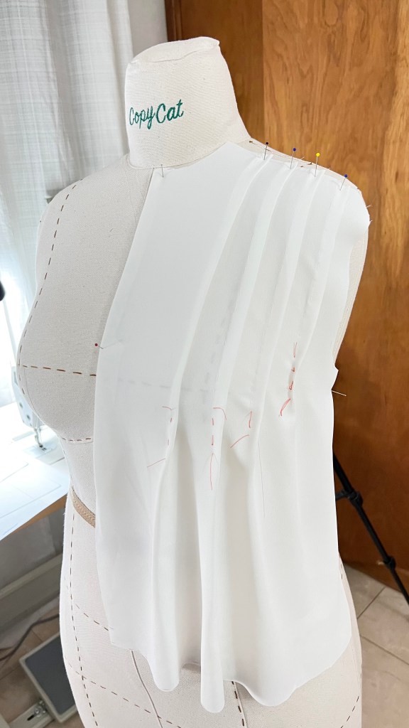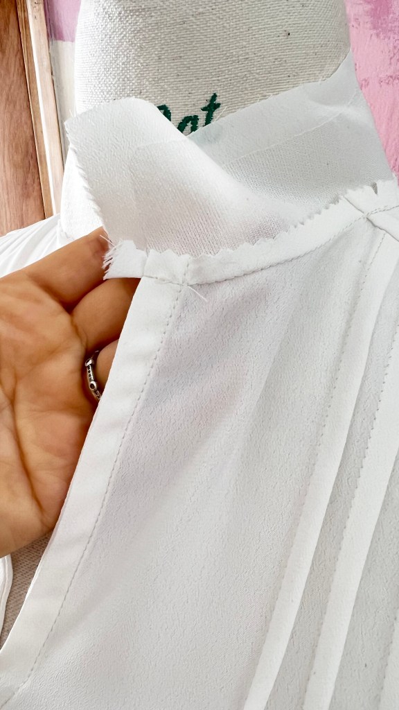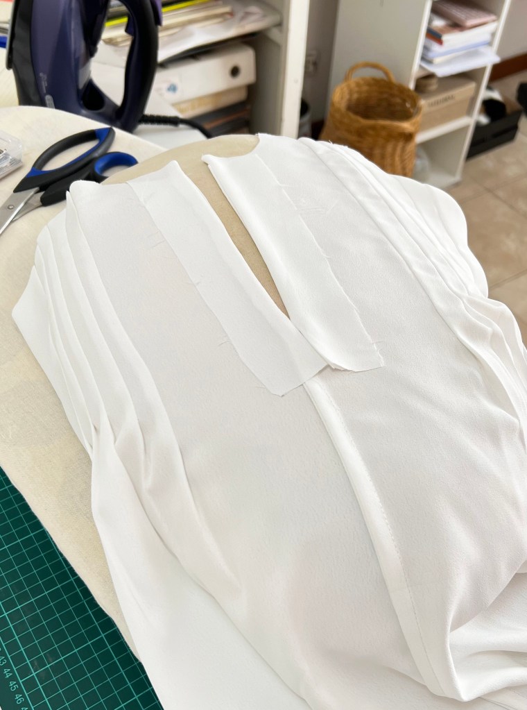 Cosí con una puntada liviana, pasé la plancha y probé el resultado en el maniquí. Y no me gustó 😖 😝