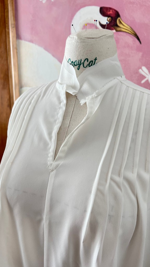 Y al terminar, pinché el cuello sobre un almohadón de sastre y planché con vapor hasta que todo quedó como quería.