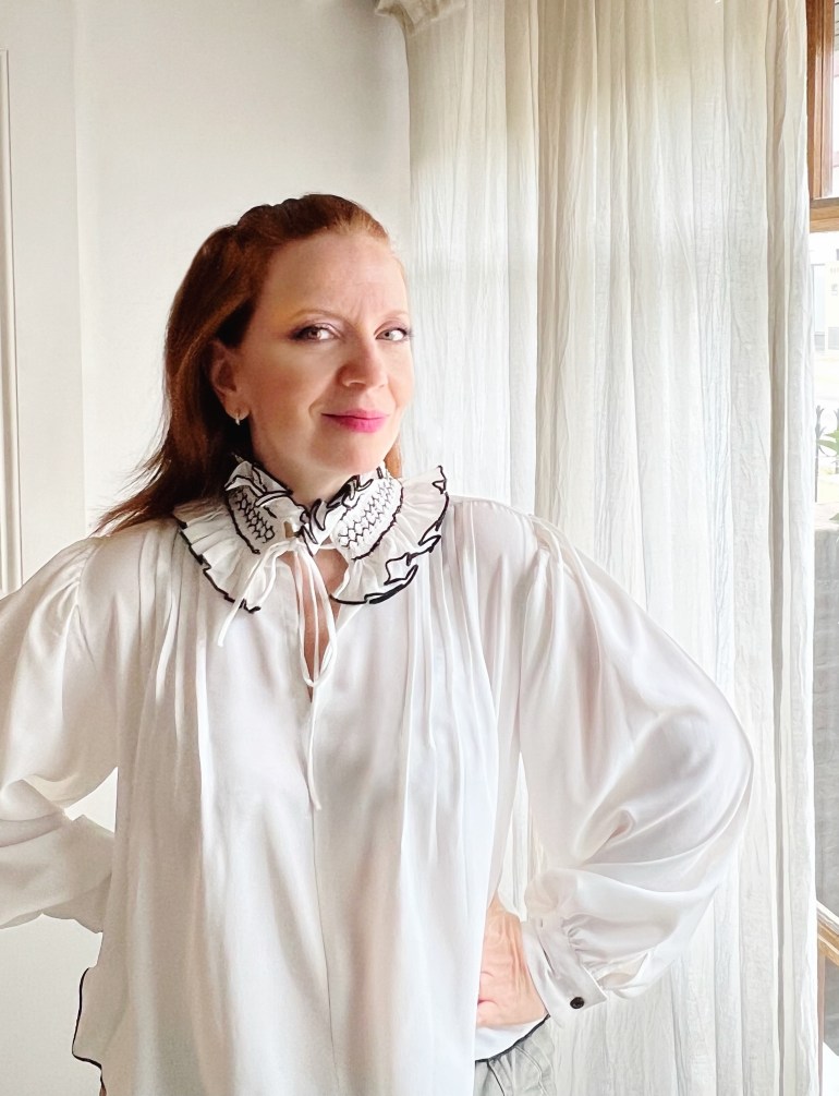 ¡Espero que les guste y se animen a hacerla! Y si no es esta blusa, que se animen a hacer algo que nunca hubieran imaginado. Como en mi caso, jamás se me hubiera ocurrido diseñar esta blusa con ese cuello. Pero me dejé llevar por la inspiración y ahora estoy feliz de tener esta prenda de lujo en mi guardarropas. 🥳