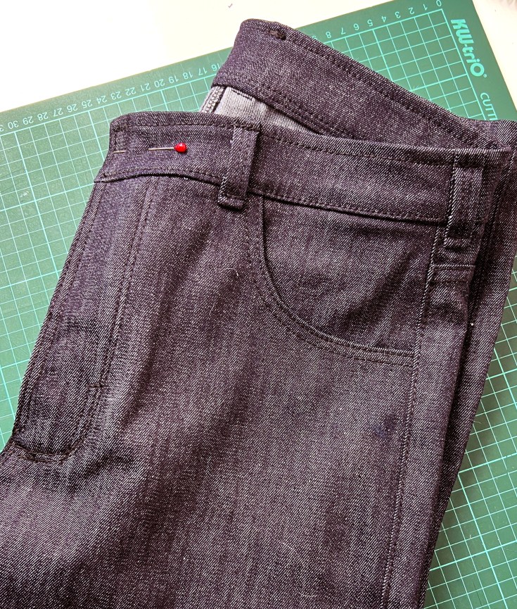 Este jean de las fotos está hecho con un denim bien oscuro (casi negro) de 8 onzas, hilo y herrajes negros. En cuanto al patrón, lo hice yo misma y muy pronto va a estar en el shop para descargar en PDF con el nombre Audrey.