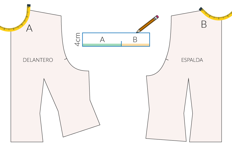 Una vez listo, tomen la medida superior de cada tramo (el delantero y la espalda), vamos a trasladarla al cuerpo.