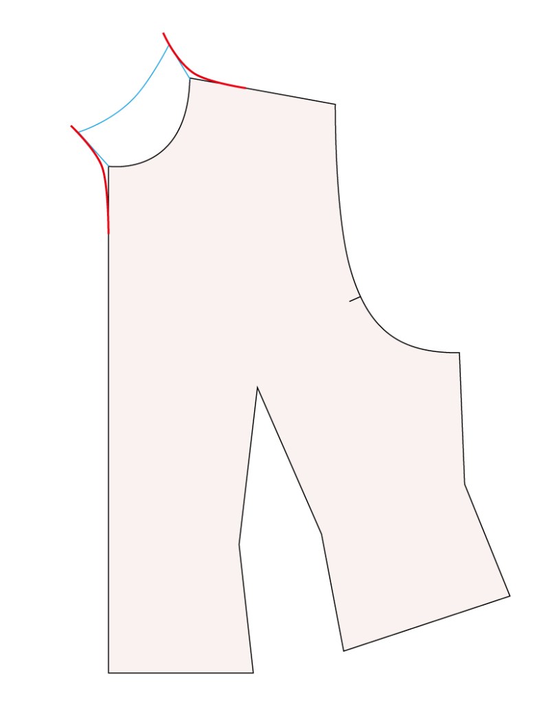 En el extremo delantero, suban 2 cm y tracen una curva que vaya desde esta marca hasta el piquete de hombro. Chequeen la medida del escote delantero y corrijan de ser necesario.