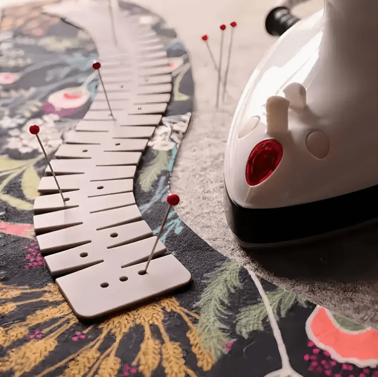 Hace mucho tiempo que venía buscando esta regla para planchar dobladillos o formas curvas. La vi un par de veces por viajes en USA pero siempre me pareció cara. En Temu está baratísima y me encantó usarla.