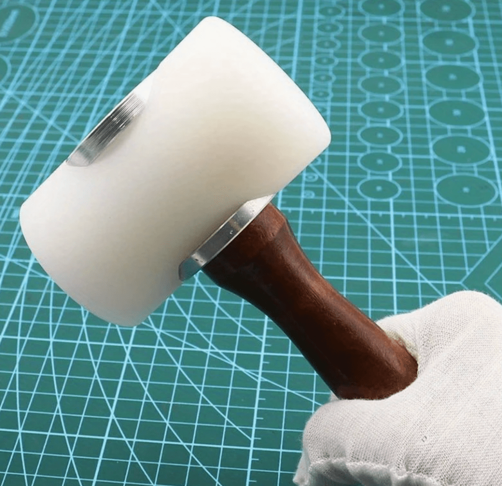 Lo venden en algunos lugares en Argentina pero aproveché que estaba en oferta en Temu y lo terminé comprando a menos de la mitad de precio. El martillo es genial, está hecho de Nylon y es especial para martillar sacabocados y herramientas de corte y perforación de cuero.